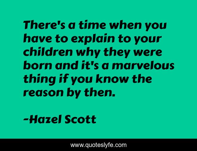 This page presents the quote "There's a time when you have to explain to your children why they were born and it's a marvelous thing if you know the reason by then.". Author of this quote is Hazel Scott. This quote is about friends, family,.