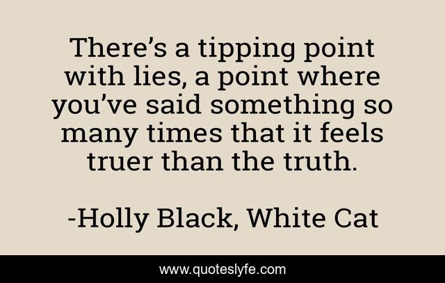 This page presents the quote "There’s a tipping point with lies, a point where you’ve said something so many times that it feels truer than the truth.". Author of this quote is Holly Black, White Cat. This quote is about lie, lying, lies,.
