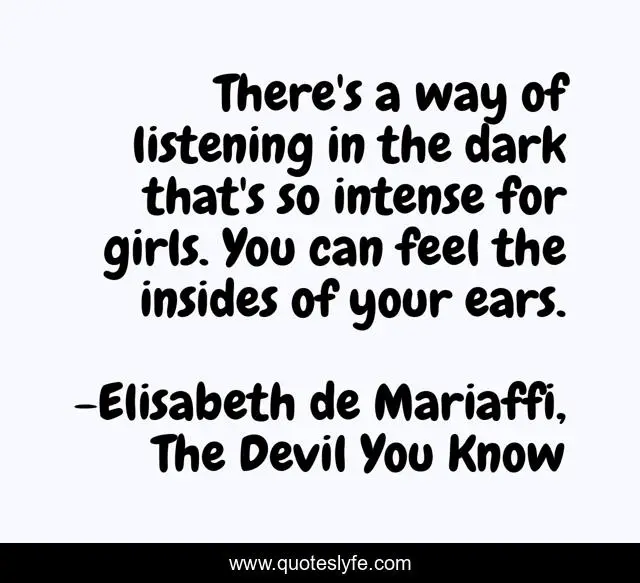 This page presents the quote "There's a way of listening in the dark that's so intense for girls. You can feel the insides of your ears.". Author of this quote is Elisabeth de Mariaffi, The Devil You Know. This quote is about alone, girls, women,.