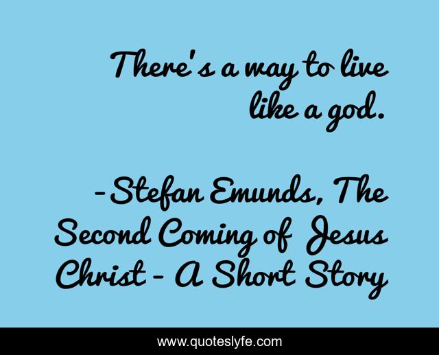 This page presents the quote "There’s a way to live like a god.". Author of this quote is Stefan Emunds, The Second Coming of Jesus Christ - A Short Story. This quote is about christ, revelation, doomsday, spirituality, mysticism, apocalypse, end-of-days, second-coming,.