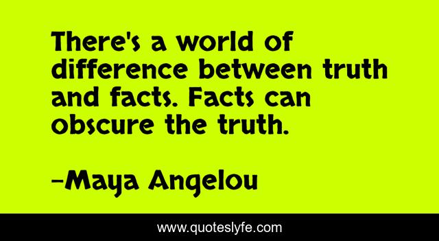 This page presents the quote "There's a world of difference between truth and facts. Facts can obscure the truth.". Author of this quote is Maya Angelou. This quote is about facts, world, difference,.