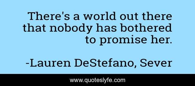 This page presents the quote "There's a world out there that nobody has bothered to promise her.". Author of this quote is Lauren DeStefano, Sever. This quote is about world, lonely, unloved, broken-girls,.