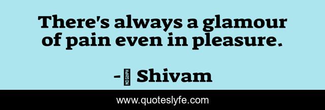 This page presents the quote "There's always a glamour of pain even in pleasure.". Author of this quote is ~ Shivam. This quote is about glamour, pain, romance, pleasure, love, erotica, affection,.