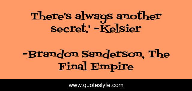 "Brandon Sanderson, The Final Empire Quotes." Quoteslyfe.com, 2025. Sun. 07 Dec. 2025. <https://www.quoteslyfe.com/quote/There-s-always-another-secret-Kelsier-246616>.