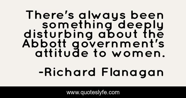 This page presents the quote "There's always been something deeply disturbing about the Abbott government's attitude to women.". Author of this quote is Richard Flanagan. This quote is about always, women, government,.