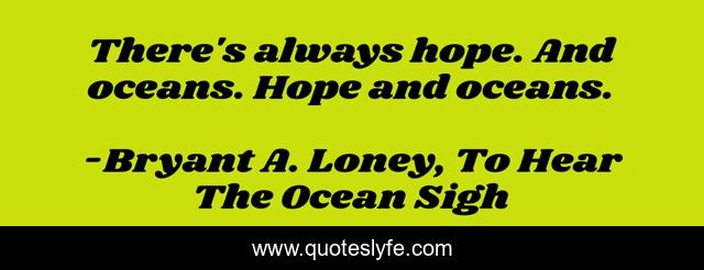 "Bryant A. Loney, To Hear The Ocean Sigh Quotes." Quoteslyfe.com, 2025. Sat. 06 Dec. 2025. <https://www.quoteslyfe.com/quote/There-s-always-hope-And-oceans-Hope-237308>.