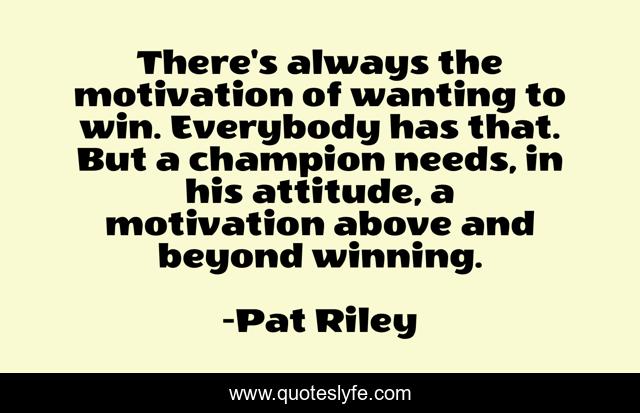 This page presents the quote "There's always the motivation of wanting to win. Everybody has that. But a champion needs, in his attitude, a motivation above and beyond winning.". Author of this quote is Pat Riley. This quote is about motivation, winning,.