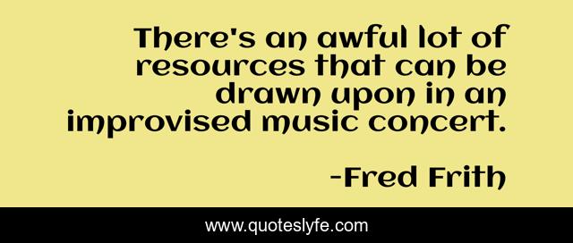This page presents the quote "There's an awful lot of resources that can be drawn upon in an improvised music concert.". Author of this quote is Fred Frith. This quote is about resources, concert, lot,.