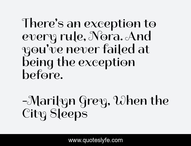 This page presents the quote "There's an exception to every rule, Nora. And you've never failed at being the exception before.". Author of this quote is Marilyn Grey, When the City Sleeps. This quote is about exceptions, rules, exception,.
