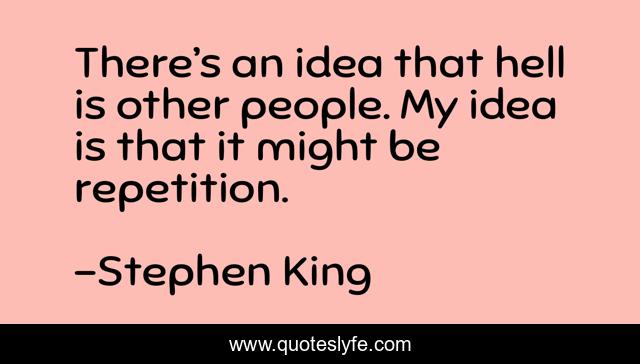 This page presents the quote "There’s an idea that hell is other people. My idea is that it might be repetition.". Author of this quote is Stephen King. This quote is about hell, horror, repetition,.