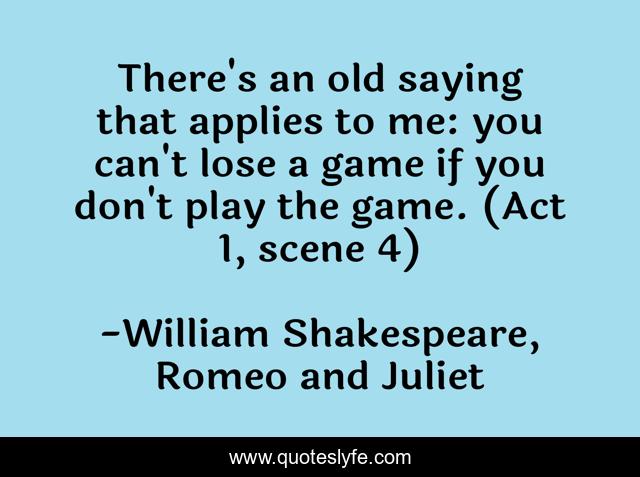 This page presents the quote "There's an old saying that applies to me: you can't lose a game if you don't play the game. (Act 1, scene 4)". Author of this quote is William Shakespeare, Romeo and Juliet. .