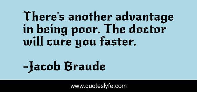 This page presents the quote "There's another advantage in being poor. The doctor will cure you faster.". Author of this quote is Jacob Braude. .