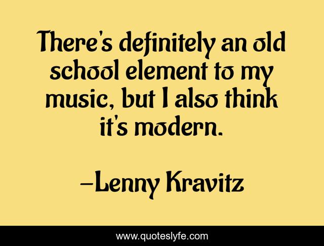 This page presents the quote "There's definitely an old school element to my music, but I also think it's modern.". Author of this quote is Lenny Kravitz. This quote is about school, modern, think,.