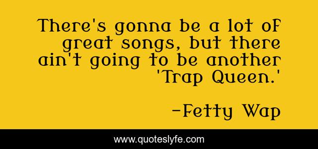 This page presents the quote "There's gonna be a lot of great songs, but there ain't going to be another 'Trap Queen.'". Author of this quote is Fetty Wap. This quote is about queen, going, trap,.