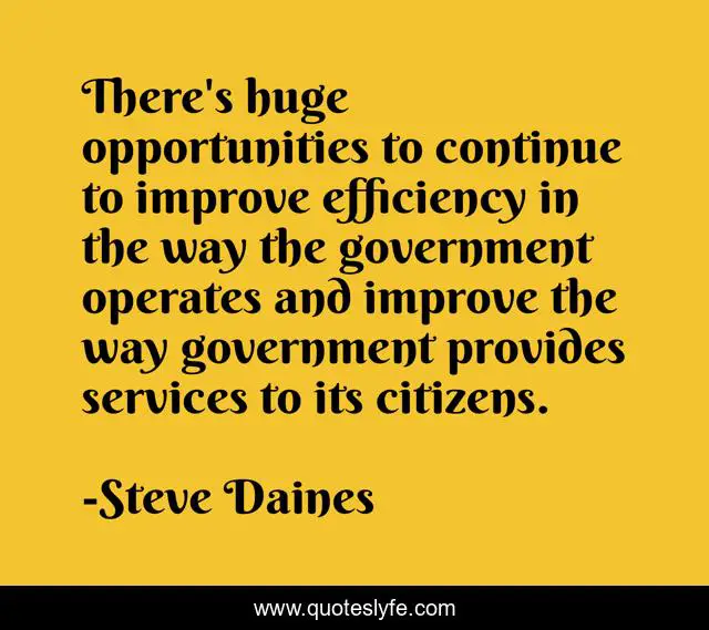 This page presents the quote "There's huge opportunities to continue to improve efficiency in the way the government operates and improve the way government provides services to its citizens.". Author of this quote is Steve Daines. This quote is about efficiency, opportunities,.