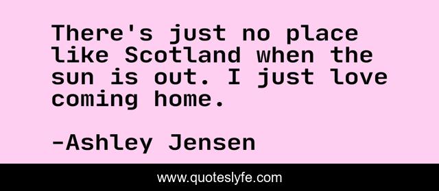 This page presents the quote "There's just no place like Scotland when the sun is out. I just love coming home.". Author of this quote is Ashley Jensen. This quote is about sun, love, place, affection,.