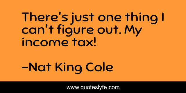 This page presents the quote "There's just one thing I can't figure out. My income tax!". Author of this quote is Nat King Cole. This quote is about tax, just, income,.