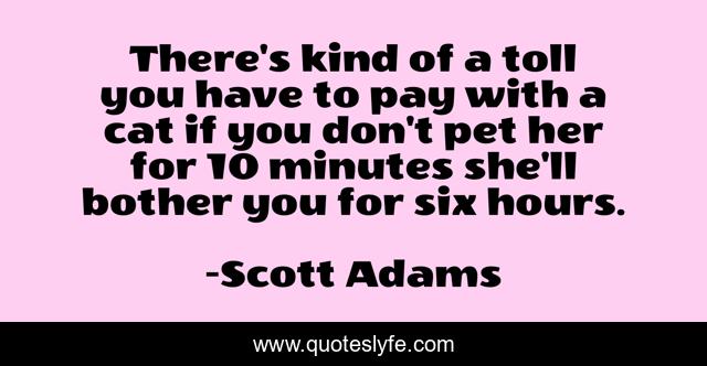 This page presents the quote "There's kind of a toll you have to pay with a cat if you don't pet her for 10 minutes she'll bother you for six hours.". Author of this quote is Scott Adams. This quote is about she, cat,.