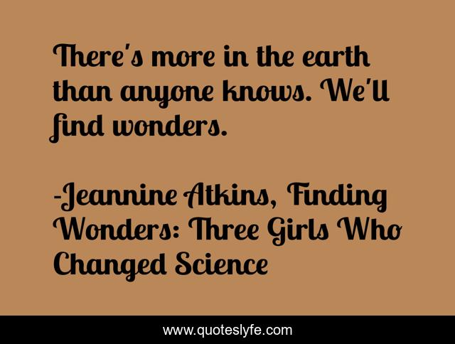 This page presents the quote "There's more in the earth than anyone knows. We'll find wonders.". Author of this quote is Jeannine Atkins, Finding Wonders: Three Girls Who Changed Science. This quote is about science, jeannine-watkins, finding-wonders,.