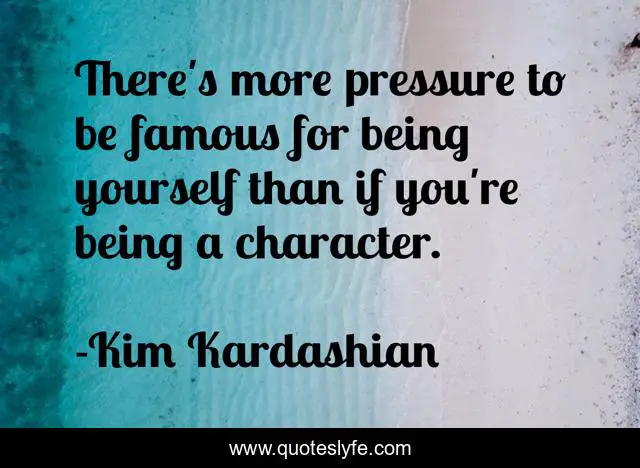 This page presents the quote "There's more pressure to be famous for being yourself than if you're being a character.". Author of this quote is Kim Kardashian. This quote is about character, yourself,.