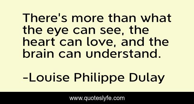 This page presents the quote "There's more than what the eye can see, the heart can love, and the brain can understand.". Author of this quote is Louise Philippe Dulay. This quote is about heart, eyes, love, understanding-others, thinking, positive, self, life, confidence,.