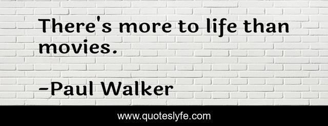 This page presents the quote "There's more to life than movies.". Author of this quote is Paul Walker. This quote is about life, more,.