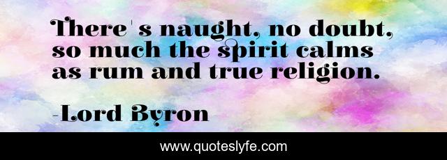 This page presents the quote "There's naught, no doubt, so much the spirit calms as rum and true religion.". Author of this quote is Lord Byron. This quote is about doubt, true, spirit,.