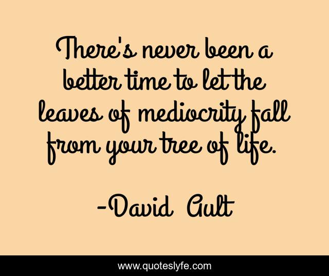 This page presents the quote "There's never been a better time to let the leaves of mediocrity fall from your tree of life.". Author of this quote is David Ault. This quote is about decision-inspirational, mediocrity, leaves, excellence, quality-of-life,.