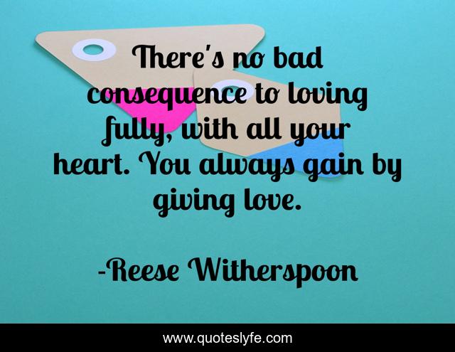 This page presents the quote "There's no bad consequence to loving fully, with all your heart. You always gain by giving love.". Author of this quote is Reese Witherspoon. This quote is about giving, heart, loving,.