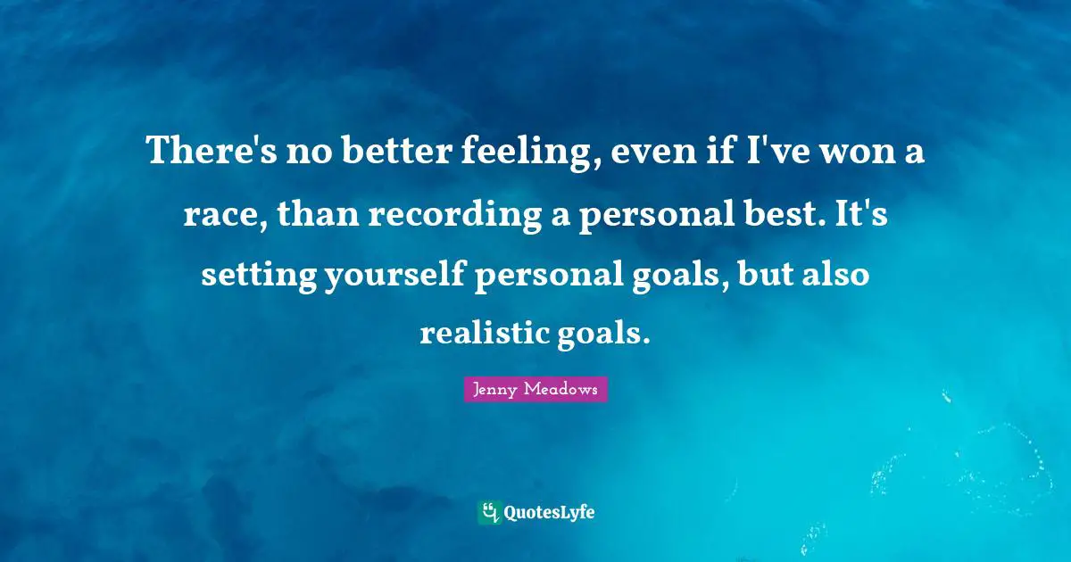 This page presents the quote "There's no better feeling, even if I've won a race, than recording a personal best. It's setting yourself personal goals, but also realistic goals.". Author of this quote is Jenny Meadows. This quote is about race, setting, goal, personal best, realistic goals, feelings,.
