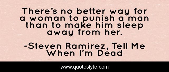 This page presents the quote "There’s no better way for a woman to punish a man than to make him sleep away from her.". Author of this quote is Steven Ramirez, Tell Me When I'm Dead. This quote is about drunk, novel, dead, zombie-thriller, soldiers, paranormal-thriller, horde, na, hordes,.