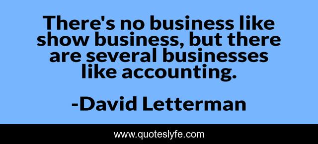 This page presents the quote "There's no business like show business, but there are several businesses like accounting.". Author of this quote is David Letterman. This quote is about accounting, like, show,.