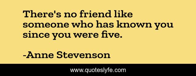 This page presents the quote "There's no friend like someone who has known you since you were five.". Author of this quote is Anne Stevenson. .