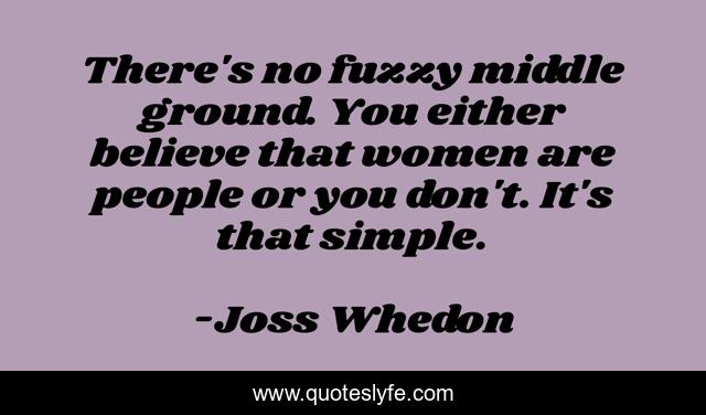 This page presents the quote "There's no fuzzy middle ground. You either believe that women are people or you don't. It's that simple.". Author of this quote is Joss Whedon. This quote is about equality, feminism,.