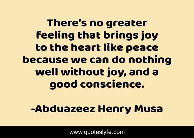 This page presents the quote "There’s no greater feeling that brings joy to the heart like peace because we can do nothing well without joy, and a good conscience.". Author of this quote is Abduazeez Henry Musa. .