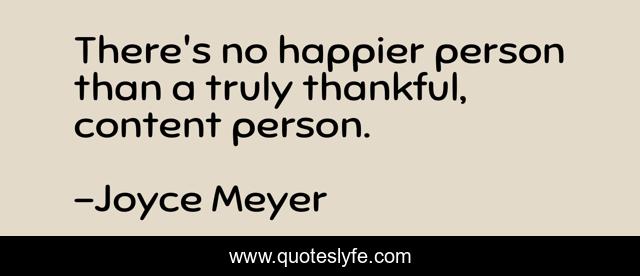 This page presents the quote "There's no happier person than a truly thankful, content person.". Author of this quote is Joyce Meyer. This quote is about content, person,.