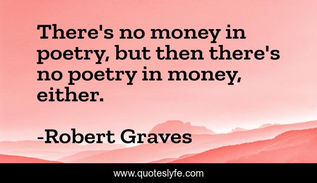 This page presents the quote "There's no money in poetry, but then there's no poetry in money, either.". Author of this quote is Robert Graves. This quote is about then, poetry, either,.
