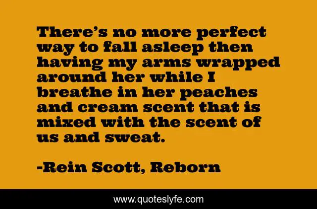 This page presents the quote "There’s no more perfect way to fall asleep then having my arms wrapped around her while I breathe in her peaches and cream scent that is mixed with the scent of us and sweat.". Author of this quote is Rein Scott, Reborn. This quote is about new-adult-romance, love, contemporary-romance, affection,.