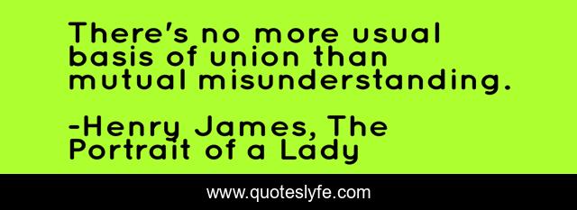 This page presents the quote "There's no more usual basis of union than mutual misunderstanding.". Author of this quote is Henry James, The Portrait of a Lady. .