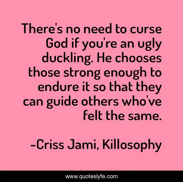 There's no need to curse God if you're an ugly duckling. He chooses those strong enough to endure it so that they can guide others who've felt the same.
