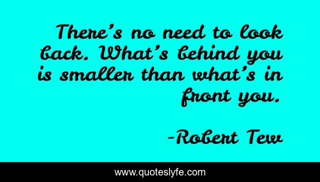 This page presents the quote "There’s no need to look back. What’s behind you is smaller than what’s in front you.". Author of this quote is Robert Tew. This quote is about lessons, life, letting-go, past, future, truth, happiness,.