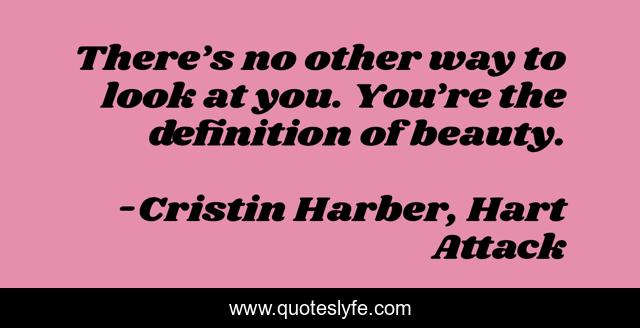 This page presents the quote "There’s no other way to look at you. You’re the definition of beauty.". Author of this quote is Cristin Harber, Hart Attack. This quote is about alpha, titan, roman-hart, romantic-suspense,.