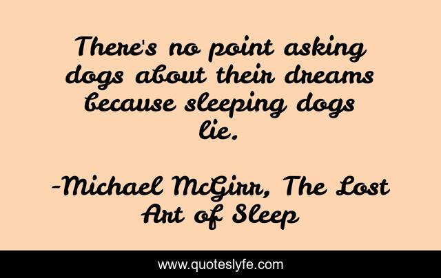 This page presents the quote "There's no point asking dogs about their dreams because sleeping dogs lie.". Author of this quote is Michael McGirr, The Lost Art of Sleep. .