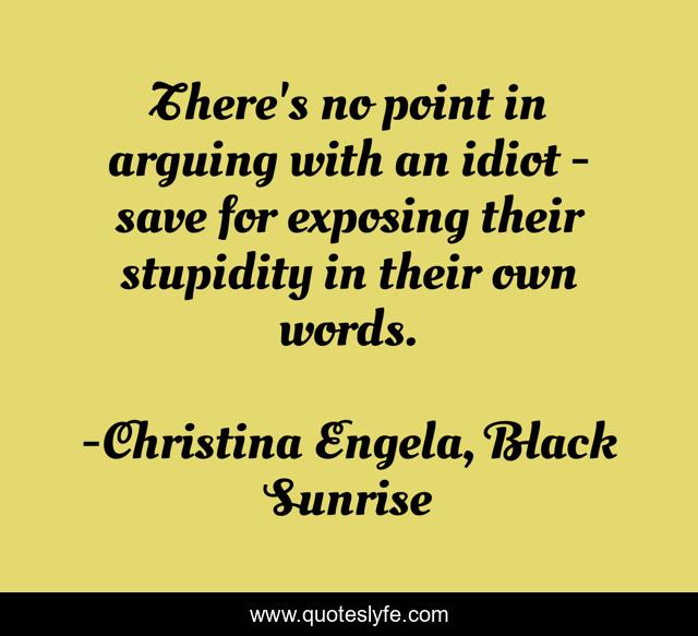 This page presents the quote "There's no point in arguing with an idiot - save for exposing their stupidity in their own words.". Author of this quote is Christina Engela, Black Sunrise. This quote is about arguing, idiot, stupidity, exposing, words,.