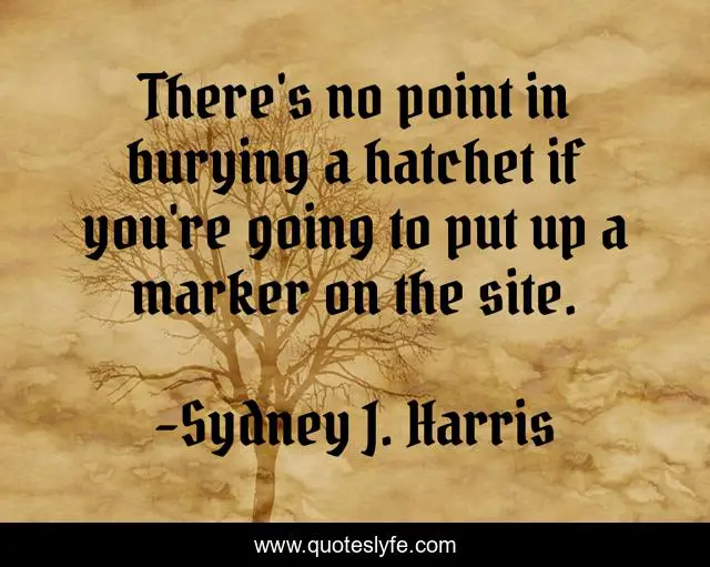 This page presents the quote "There's no point in burying a hatchet if you're going to put up a marker on the site.". Author of this quote is Sydney J. Harris. .