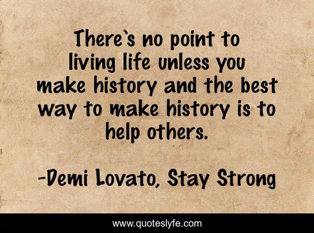 This page presents the quote "There’s no point to living life unless you make history and the best way to make history is to help others.". Author of this quote is Demi Lovato, Stay Strong. .