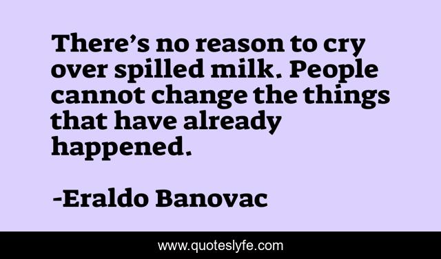 This page presents the quote "There’s no reason to cry over spilled milk. People cannot change the things that have already happened.". Author of this quote is Eraldo Banovac. This quote is about sociology, philosophy, reason, spilled-milk, crying, philosophy-of-life, happened,.