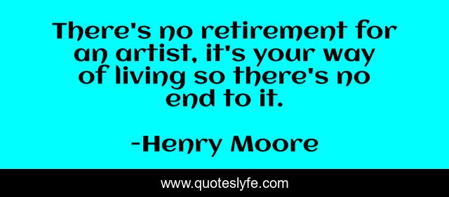 This page presents the quote "There's no retirement for an artist, it's your way of living so there's no end to it.". Author of this quote is Henry Moore. This quote is about enthusiasm, art, inspirational, creative,.