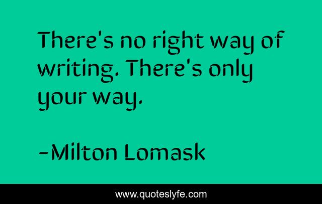 This page presents the quote "There's no right way of writing. There's only your way.". Author of this quote is Milton Lomask. .