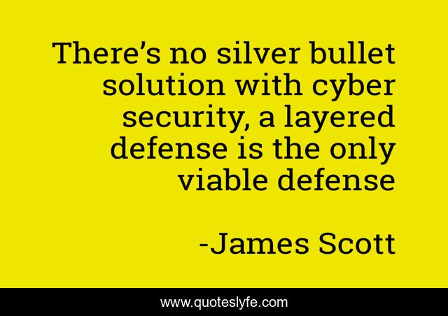 This page presents the quote "There’s no silver bullet solution with cyber security, a layered defense is the only viable defense". Author of this quote is James Scott. This quote is about cybersecurity, science, computers, tech, cyber-security, technology,.